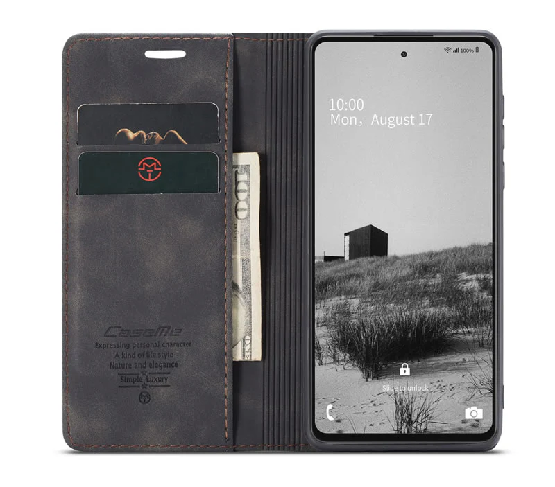 Protégez de façon intégrale et haut de gamme votre Samsung A73 avec cette superbe housse en simili cuir de chez CASEME.