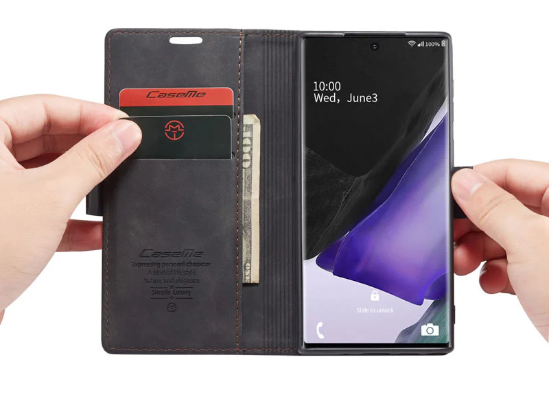 Protégez de façon intégrale et haut de gamme votre Samsung Note 20 ultra avec cette superbe housse en simili cuir de chez CASEME.